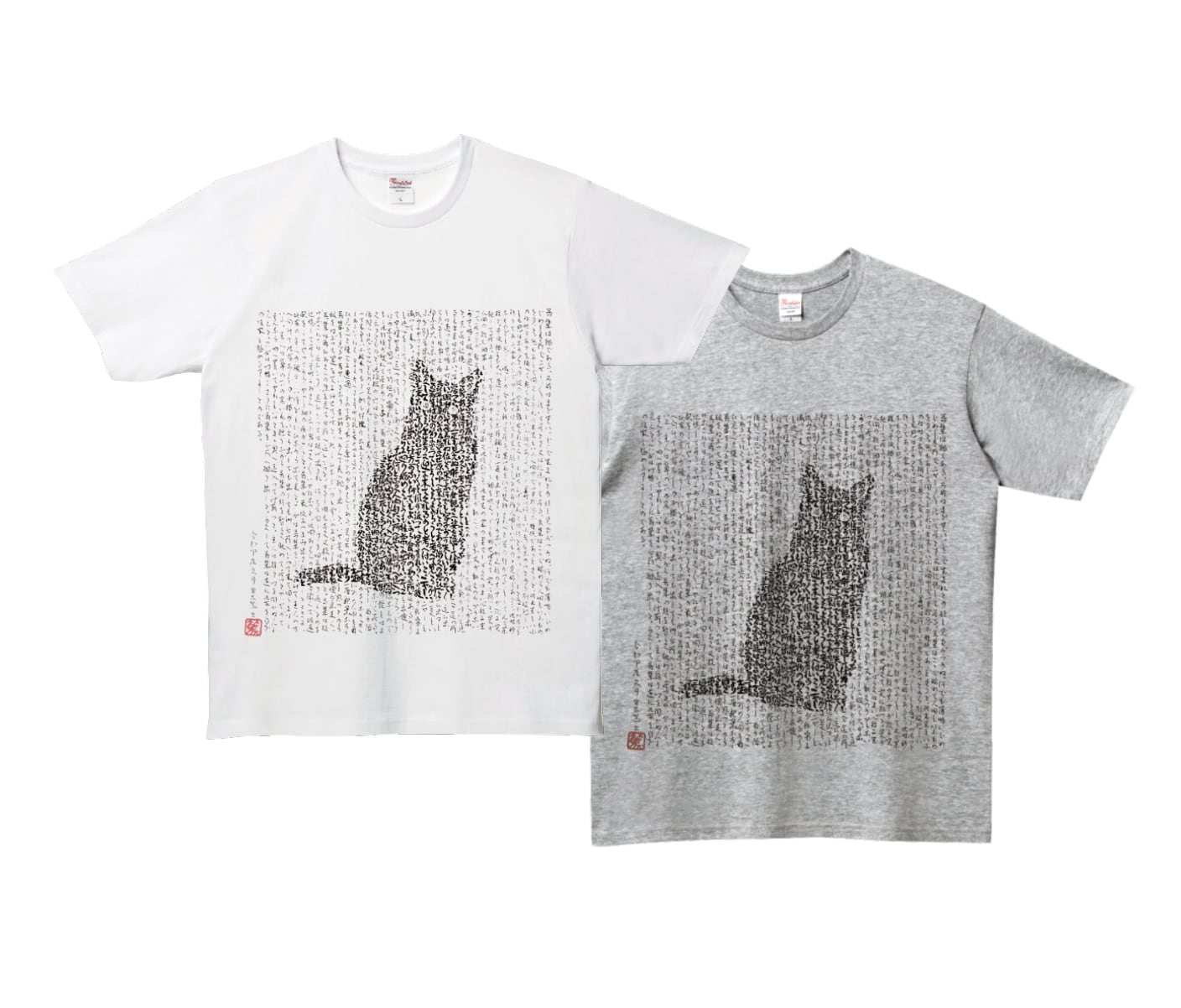Tシャツ 吾輩は猫である/夏目漱石(白/グレー)